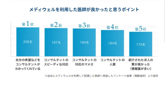 というのも、医師転職ドットコムは医師を専門としており、利用者からの高い評価を得ている転職サービスだからです。