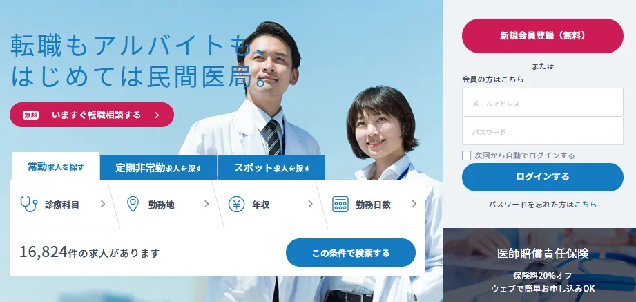 原則として医学生、研修医、医師のみが登録できます。そして会員に登録することで、転職サポート以外にも各種保険や各種サービスを利用できるようになります。