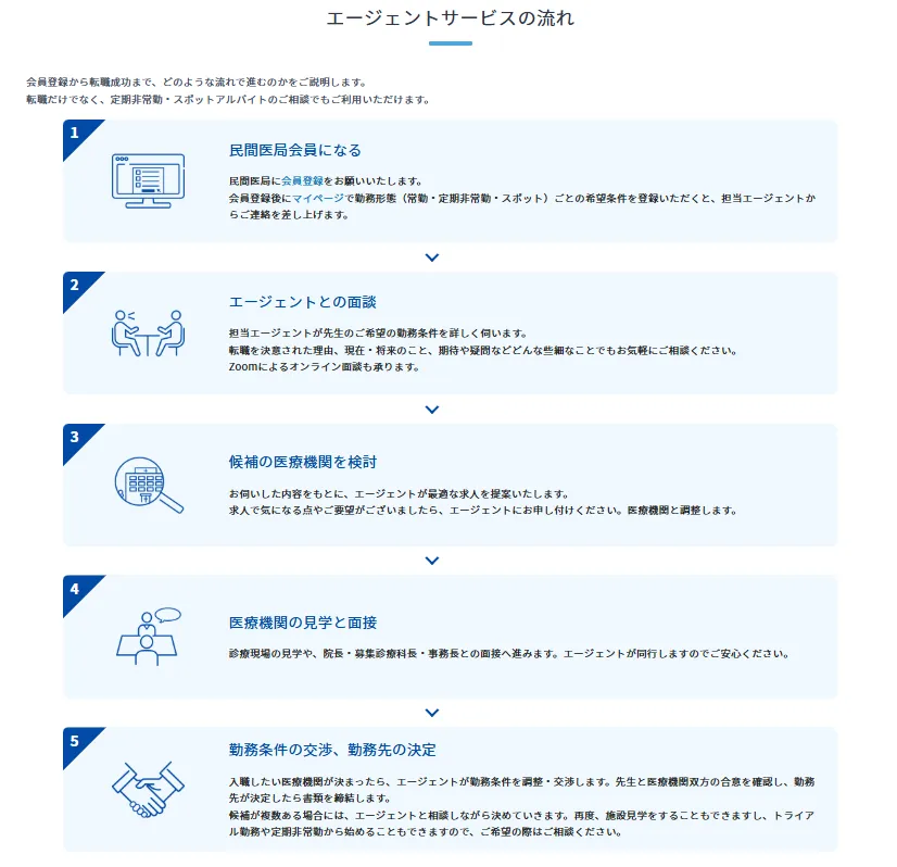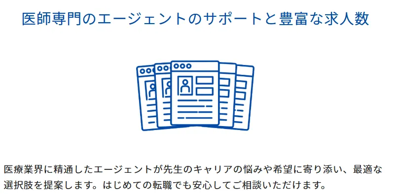 キャリアの選択肢が多い医師だからこそ、民間医局のような業界に精通した転職エージェントは、転職活動において心強い存在となります。