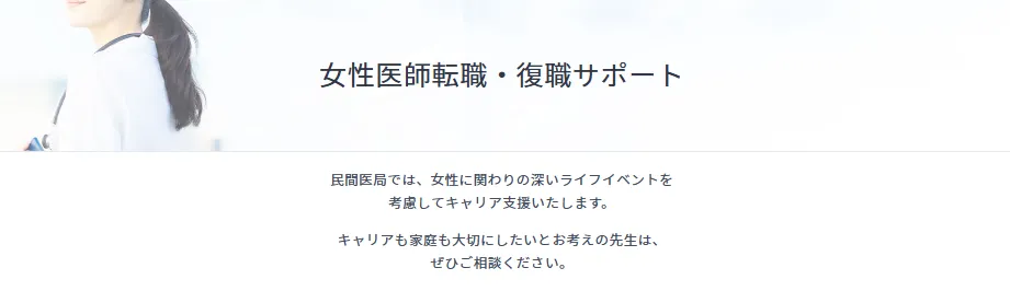 女性医師の転職・復職サポートに力を入れている