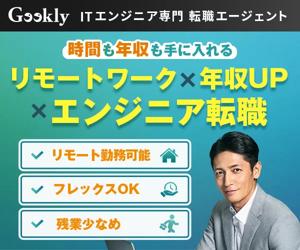 Geeklyは、IT業界に特化した転職エージェントで特に3年以上の実務経験者向けの求人が豊富です。14年の転職支援実績※1があり、一都三県、関西に強く、転職成功者の平均年収UP額は78万円※3です。